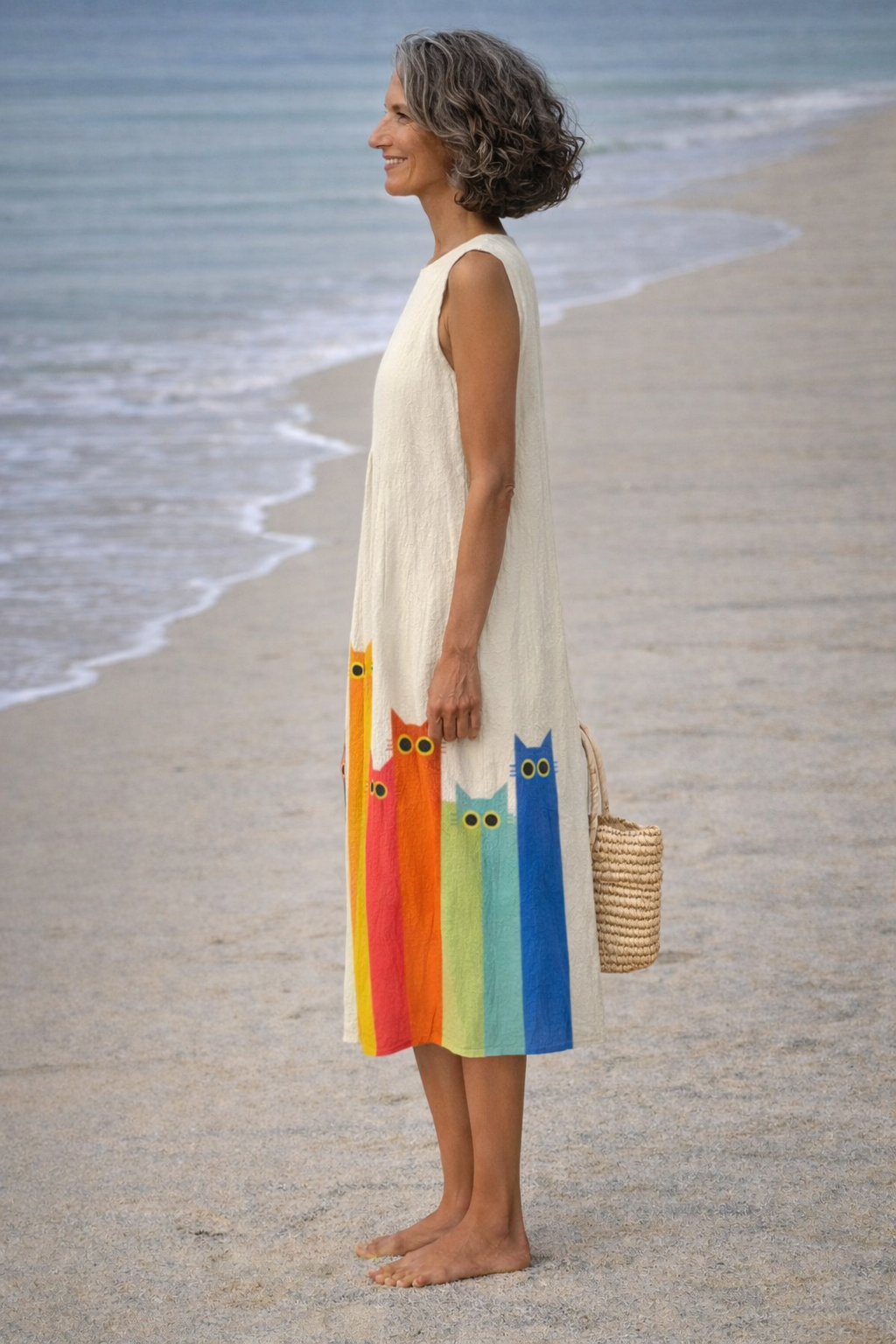 El estampado artístico de gatos aporta un toque divertido y lleno de personalidad, ideal para paseos, almuerzos o momentos informales.